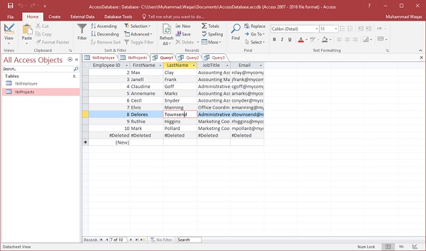 Click Yes and go to your Datasheet View and you will see that the specified employee record is deleted now.